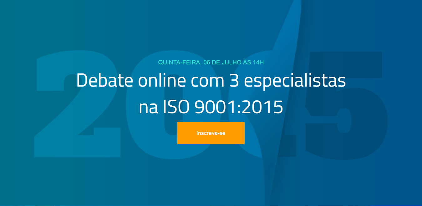 QUINTA-FEIRA, 06 DE JULHO ÀS 14h, 3 profissionais convidados trocarão conhecimento acerca da transição para a norma ISO 9001:2015.